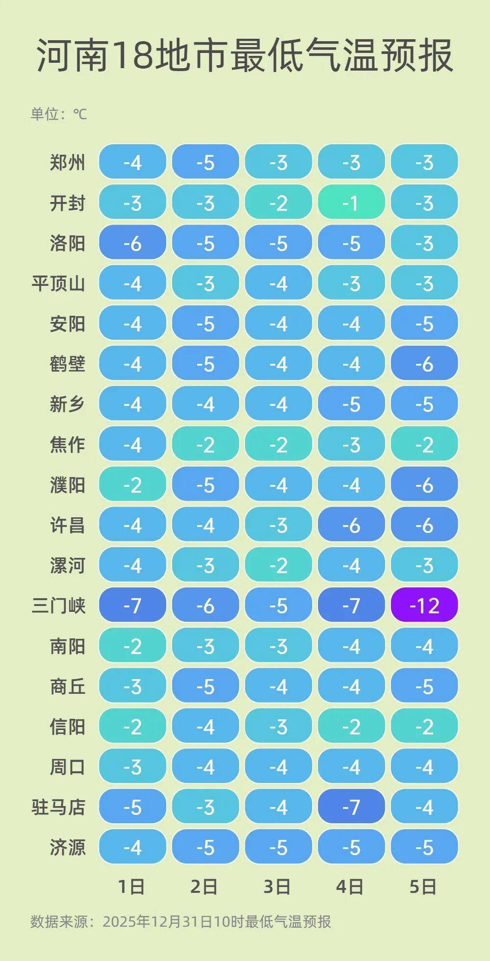 未来三天天气预报来源:河南省气象台2025年12月31日12时预报